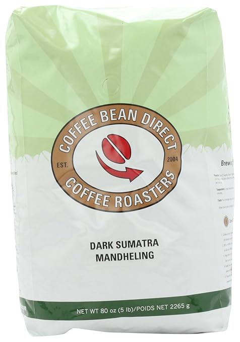 | Buy this highly rated Coffee Bean Direct Dark Sumatra Mandheling, Whole Bean Coffee, 5-Pound Bag |